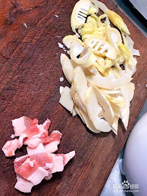 腊肉 切薄片。 热锅冷油煸香腊肉五花肉
