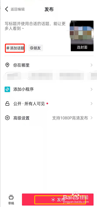 3、还能添加话题或商品连接。