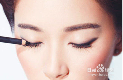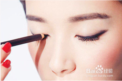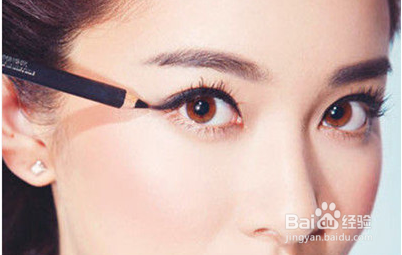 内双眼睛在睁开后,眼角睫毛根部眼线会被眼皮褶皱遮盖,所以眼角眼线要特别加重,宽度也比眼睛中间部分的眼线略宽。