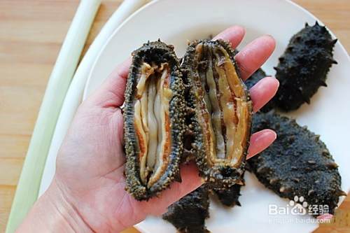 说明:用这种方法处理的鲜海参,适于做热菜类菜品,一般采用烧、炸、熬等技法,其代表菜品有葱烧鲜海参、扒瓤鲜海参等等。此外,用这种方法加工的鲜海参,应该现处理现烹调,切勿将处理好的鲜海参长时间存放,否则鲜海参容易出现脱水、腐烂等现象,造成浪费。