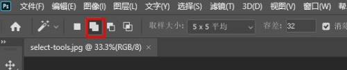魔棒工具图标在顶部第四个位置,该图标包含了三个工具。右键点击该图标,选择“魔棒工具”。