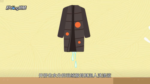 5从冷水中捞出羽绒服,并挤去水分的羽绒服将其泡入洗涤液。