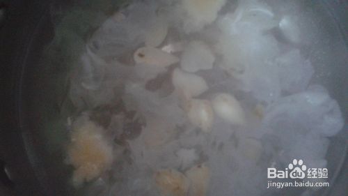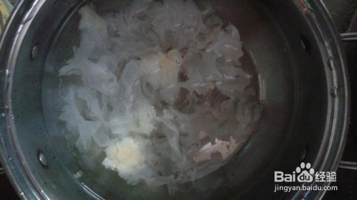坐锅点火,锅中放入清水,将泡发的银耳倒入锅中。