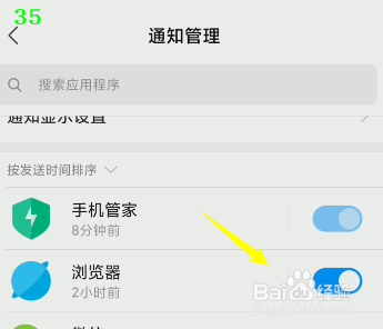 7.在通知栏管理的列表下找到浏览器,并且把它设置为关即可。