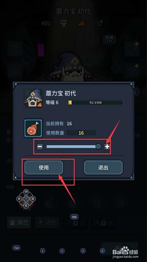 第五步,我们选择并点击我们所需要进行升级的升级材料,并选择我们所需要该材料的数量,然后点击下方的【使用】按钮;