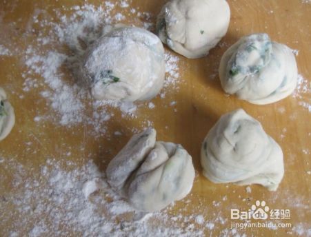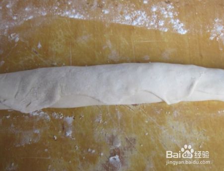揪成小剂子,案板上撒点干面粉,将小剂子按扁。