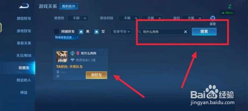 然后在添加好友页面处搜索栏输入需添加好友的ID(游戏名)再点击搜索。如图