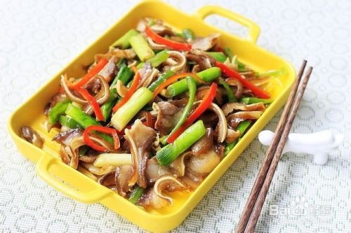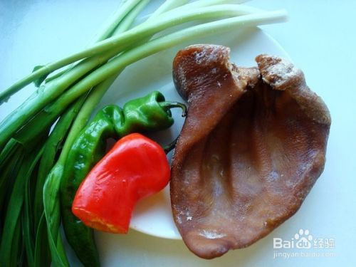 主料:蒜苗6根、卤猪耳朵一个、青红辣椒2个(爱吃辣味可以用尖椒炒)