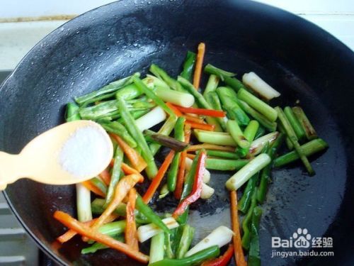 热锅凉油,油热7成,下切好蒜苗头翻炒翻炒出蒜香味,不可久炒