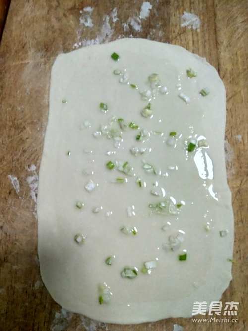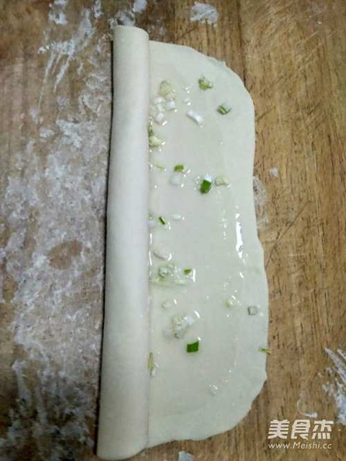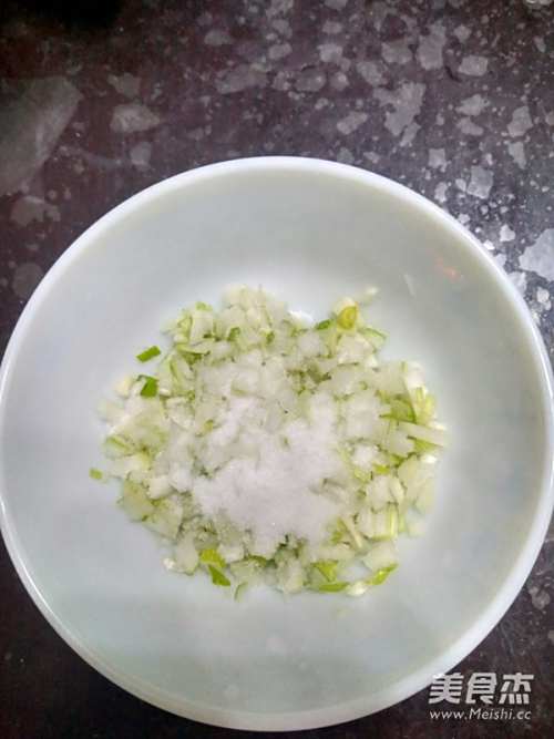4醒面的过程可以干点儿别的。葱先切丝再切成末儿(葱要用切的,别剁,剁出来的葱花味儿不正),入盐,拌匀,制成葱花盐混合物。可以再打个汤,例如鱼丸菠菜汤,这个自己随意哈!