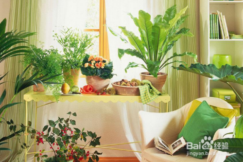 例如吊兰、马蹄莲、仙人掌等等,比较小的盆摆放在桌子上。