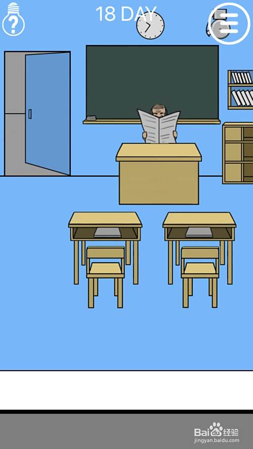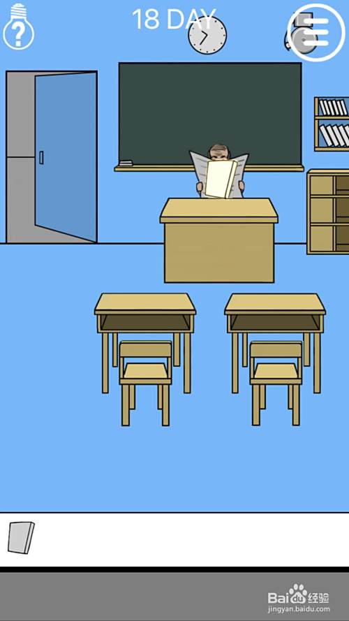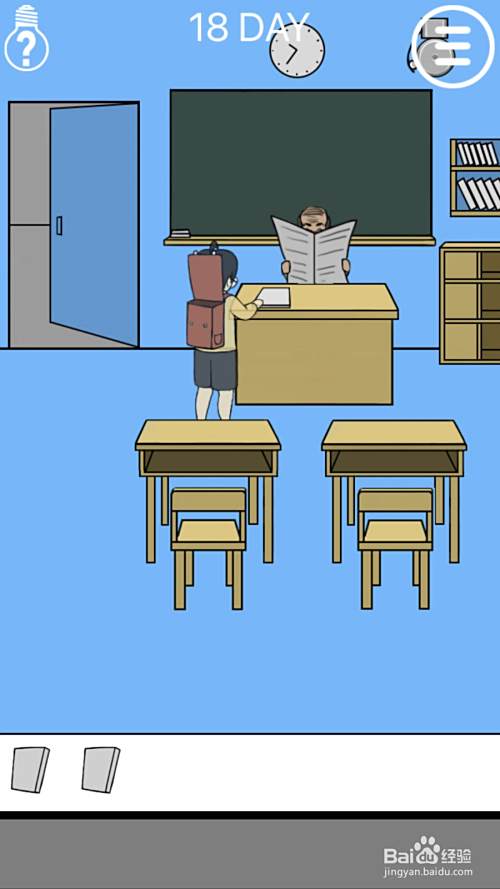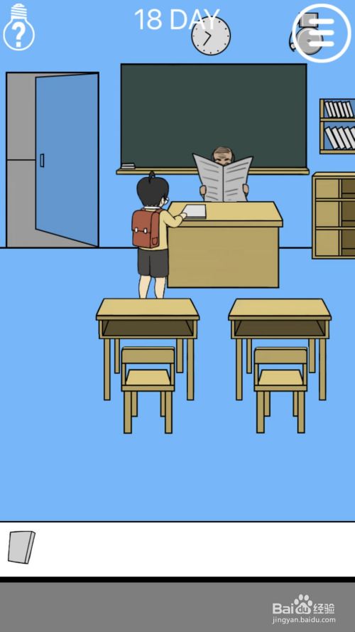 逃课大作战第18关中,我们需要在老师的监视下进行活动,因此我们不能直接出门,需要先让老师放松警惕后,才能够离开教室。