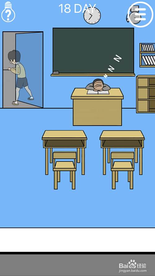 玩家在点击大门离开的时候,一定要注意老师头上要有睡着的标志,否则会被老师发现,离开教室后即可完成关卡,解锁下一关。