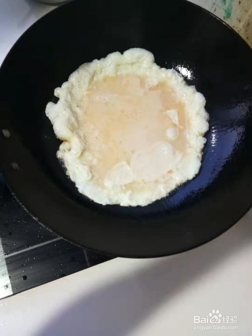 锅中放入油,烧热后,放入鸡蛋,将鸡蛋煎一下,