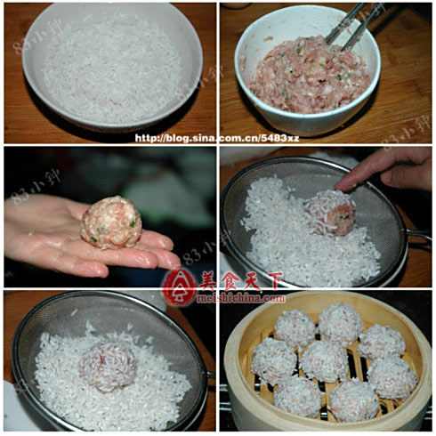 4将做好的肉球均匀的裹上一层糯米。裹糯米的时候稍微用点劲揉两下,让糯米粘得更紧点。