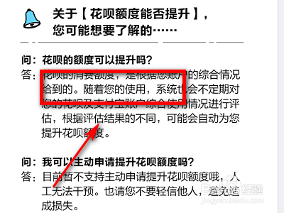 2.一步我们在这个花呗的额度的界面,然后我们只需要再点击“常见问题”。