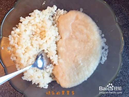 切碎的梨和泥混合一起。