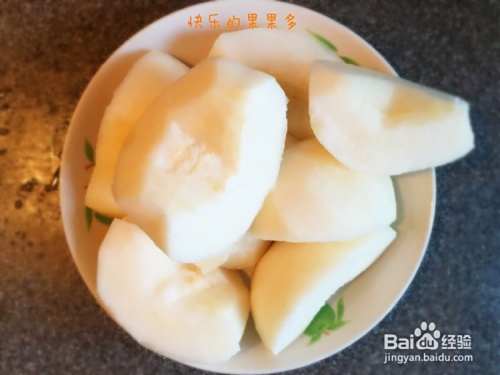 将雪梨洗净去皮,对切后去核,切大块均匀分成量等分;
