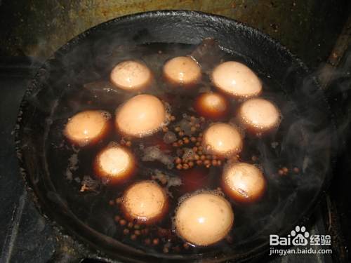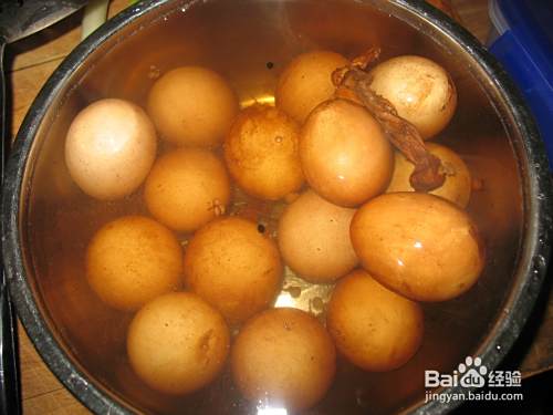 把鸡蛋洗净加入到煮沸的汤汁中继续煮,煮五分钟后再加入酱油。