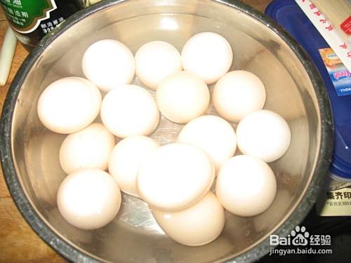大约再煮五分钟左右,将鸡蛋捞出倒入到冷水中略冷却一下。