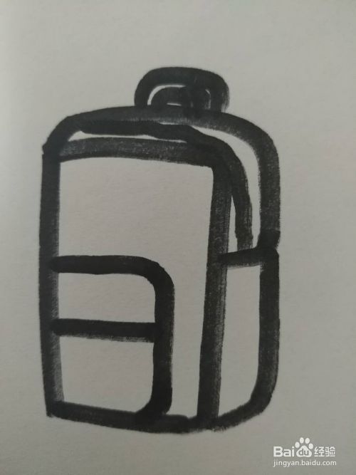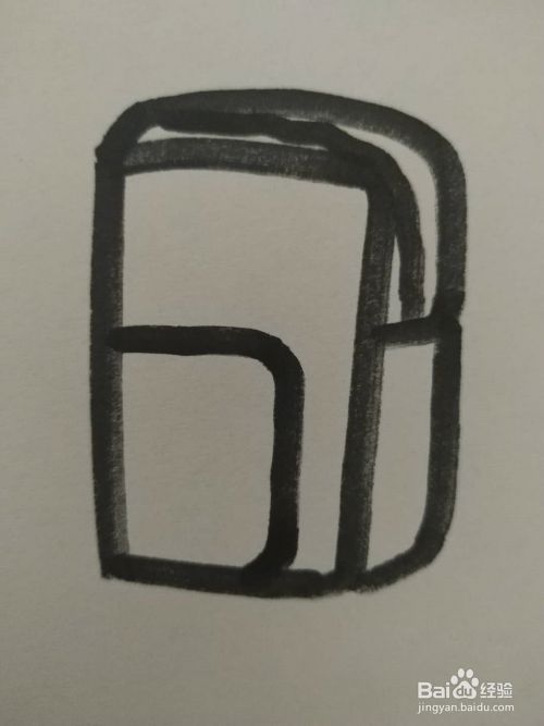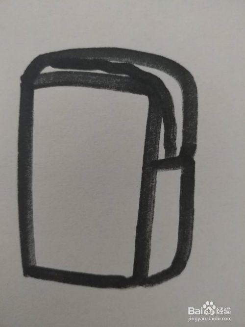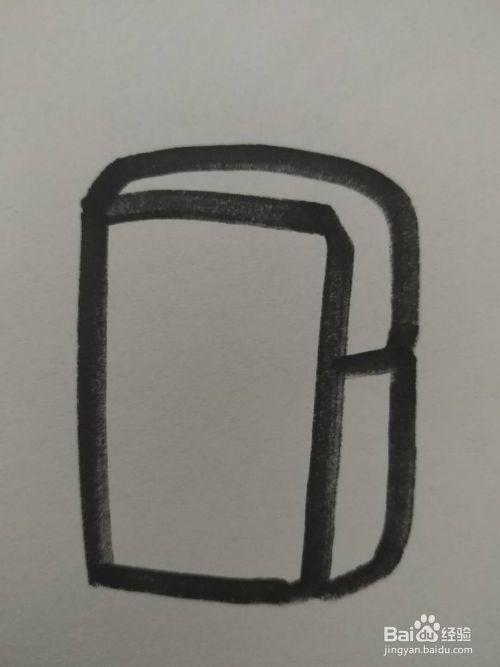 在长方形的上侧和右侧画出立体形状,在右侧画出一条横线。
