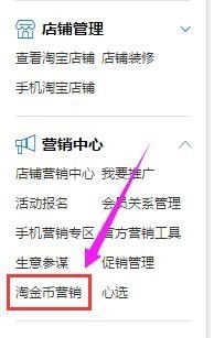 电脑登录淘宝店铺,打开卖家中心,在页面的左侧,顺序点开:营销中心--淘金币营销。