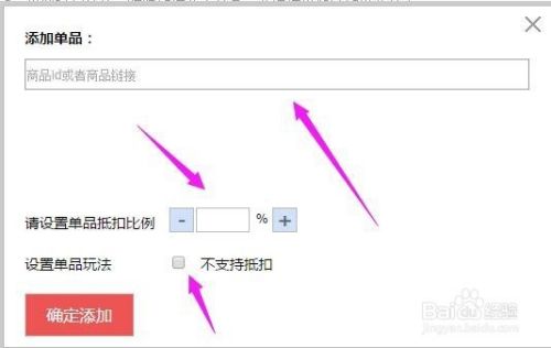 在“请设置单品抵扣比例”这里填写该商品的抵扣比例;