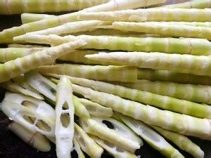 小竹笋剥壳去衣,根部觉得老的掐断。