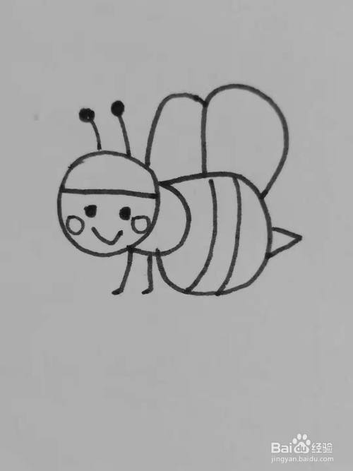 在蜜蜂的身体的下面画两条竖线,作为腿部。