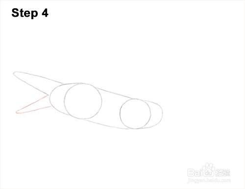 第四步:在第一条下方画一条又细又长的弧线作为恐龙下颚开放的指导。这个弧应该比顶部的要薄一些。由此产生的mosasaurus头部形状应该类似于大于号(>)。