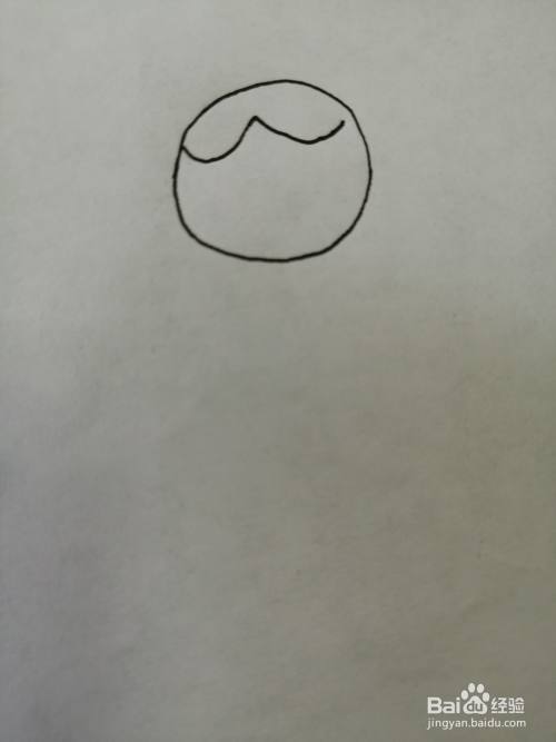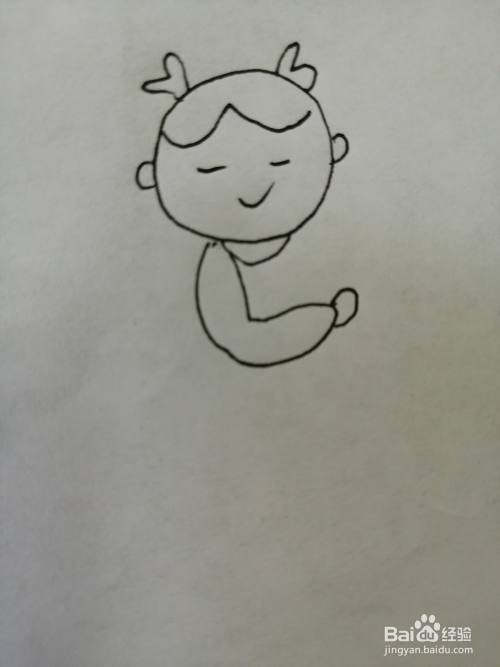 第二步,接着在跳舞的小女孩的头部里面画出刘海和小辫子。