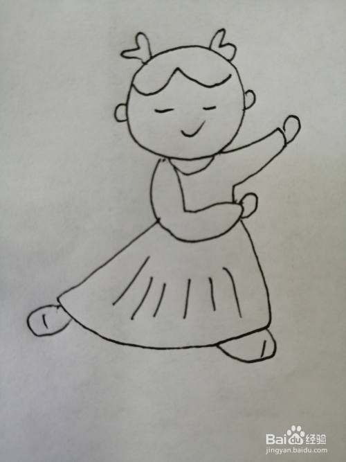 第七步,最后把跳舞小女孩的两只可爱的小脚画出来。跳舞小女孩就画好了。