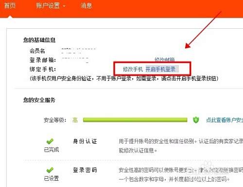 点击后会看到如下页面,在此窗口中会看到有一个“开启手机登陆”按钮,点击它可以直接开启手机登陆操作。