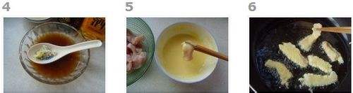 将里脊条放入面糊中挂糊。