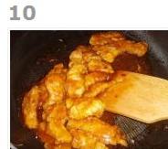 烹入糖醋味汁,倒入里脊条翻炒均匀。
