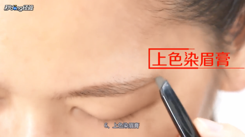 7上色染眉膏,给眉毛上染眉膏少量多次填充,看起来更加自然。