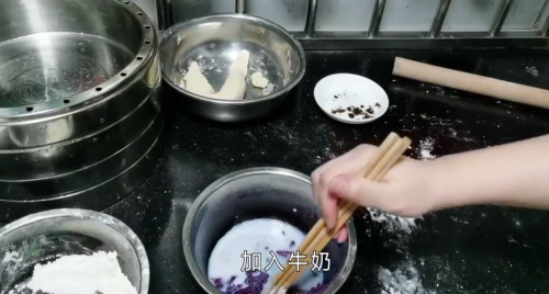 12面粉、牛奶、白砂糖、酵母揉成面团。