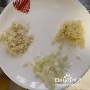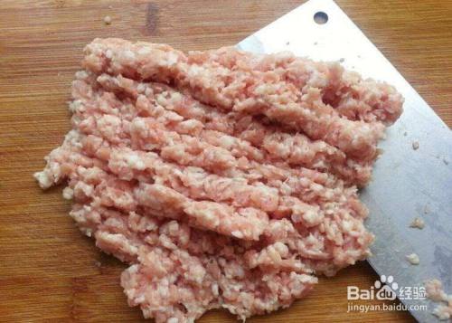 将泡软的粉条切成段,猪肉切丁,葱、姜、蒜切碎末。