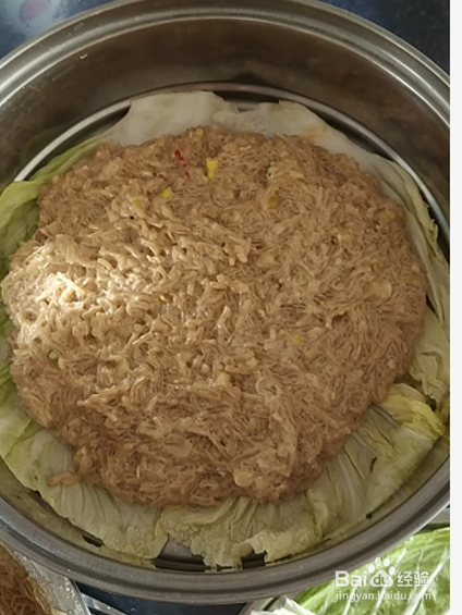将粉条放入蒸锅内,摊平。水烧开后,将粉条大火蒸30分钟出锅,切成小块装盘。