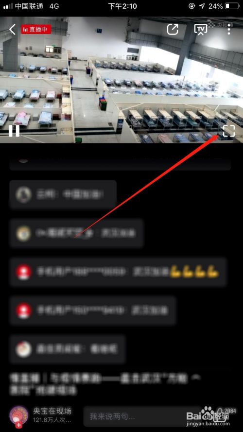 点击进入后,就可以观看方舱医院直播视频了,点击屏幕右下角的全屏按钮,可以全屏播放。