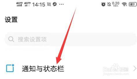 在“设置”弹出页面中,选择【通知与状态栏】进入。