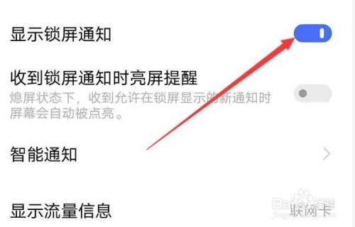 3、在“通知与状态栏”管理页面中,激活【显示锁屏通知】选项。