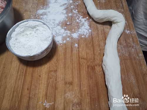 面粉加水和成面团,醒发30分钟后,揉成长面团
