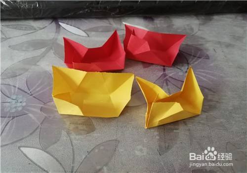 今天我们一起来折一个狗狗的食盆,这个食盆是梯形的,是由四张正方形的纸折好后组合而成。从外观看,样子很逼真,小朋友们都来练习折一下吧!