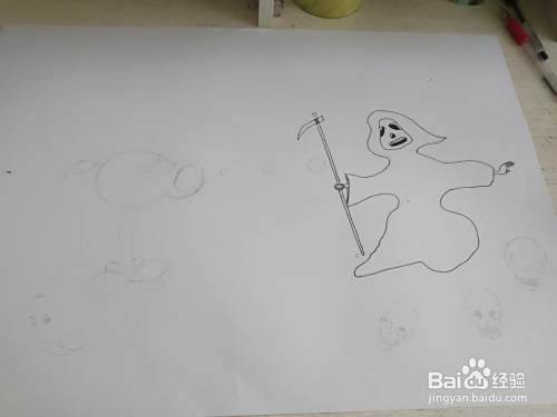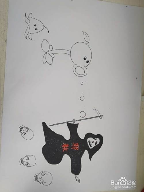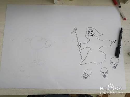 第一步用铅笔画出画面主题轮廓,画出魔鬼的形象。