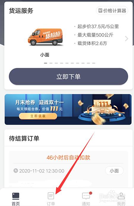进入首页后,点击下方的订单。