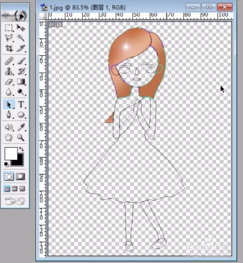 使用钢笔工具把佛系女孩的头发、表情、双手的动作、长裙、长腿、鞋子等元素一一绘制出来。