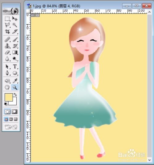 用粉色的渐变填充佛系女孩的双腿,适当的进行打光。用粉红色填充佛系女孩的鞋子。