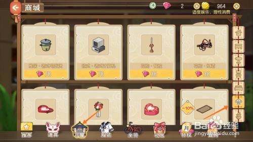 在打开的商城页面,点击下方的小屋,接着点击右侧如图所示的图标。