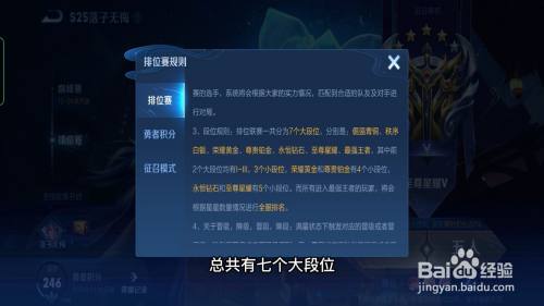 然后在段位规则面板里可以看到段位排列,总共有七个大段位。